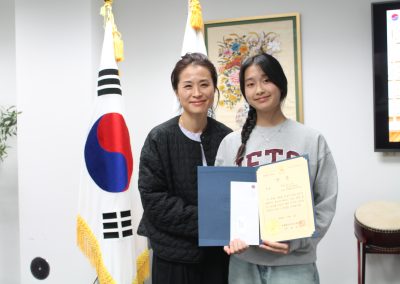 장원상은 애틀랜타한국학교 9학년 Ella Chung(정민영) 학생에게 수여됐습니다. 최우수상은 고급 부문 Hana Seo(서하나, 베다니한국문화학교 10학년), 중급 부문 Jayden Kim(김은제, 냇가에심은나무한국학교 7학년)과 Yeonjeong Cho(조연정, 베다니한국문화학교 8학년), 초급2 부문 Claire Kim(김서현, 애틀랜타한국학교 5학년)과 Yein Yoo(유예인, KCPC연합한국학교 5학년), 초급1 부문 Lucas Cho(조하율, 냇가에심은나무한국학교 1학년)과 Seoyul Kim(김서율, KMCC대건한국학교 2학년) 학생들이 받았습니다.